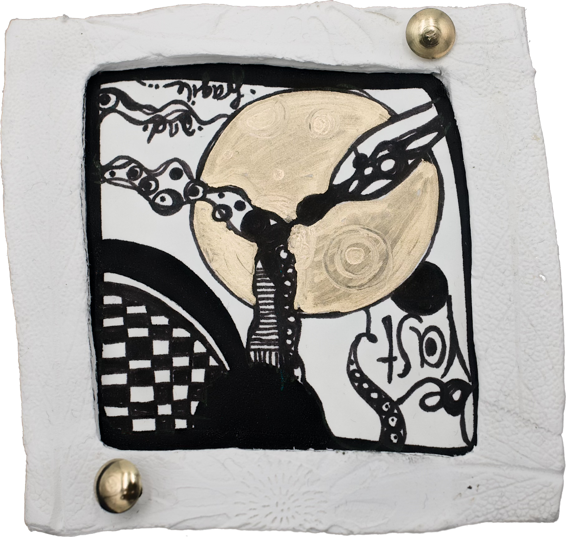 Lacquer pen and fineliner in hand-sculpted frames.