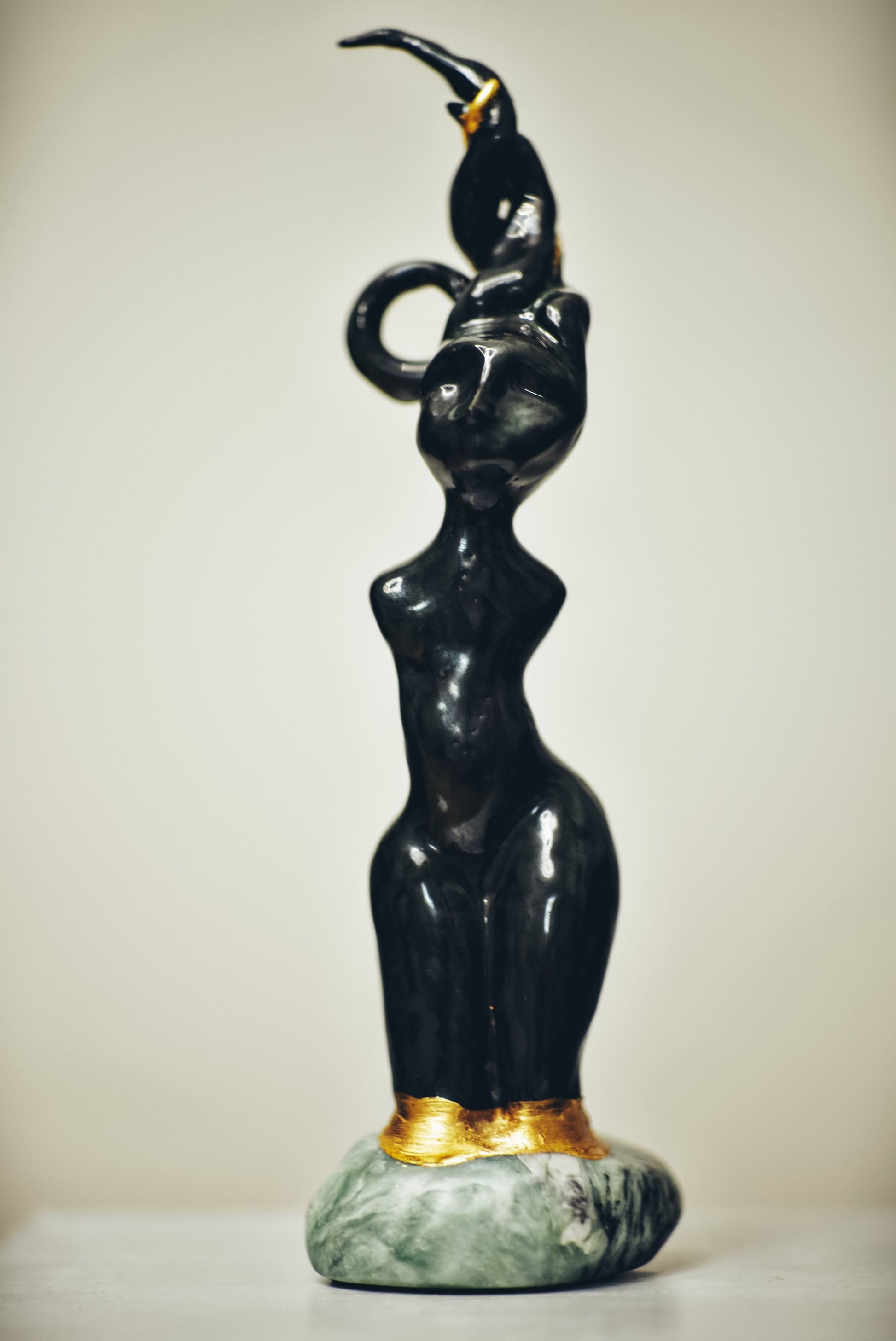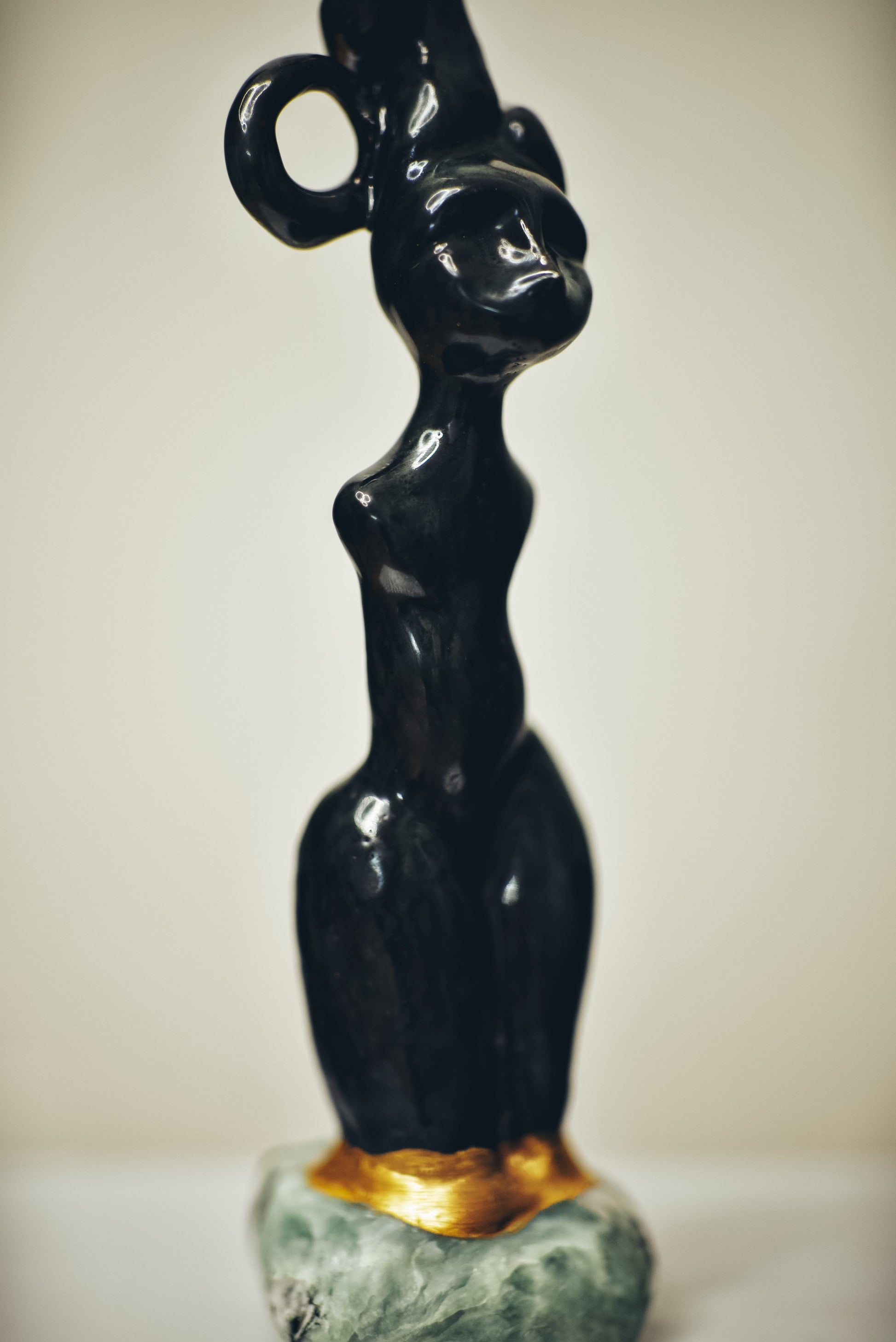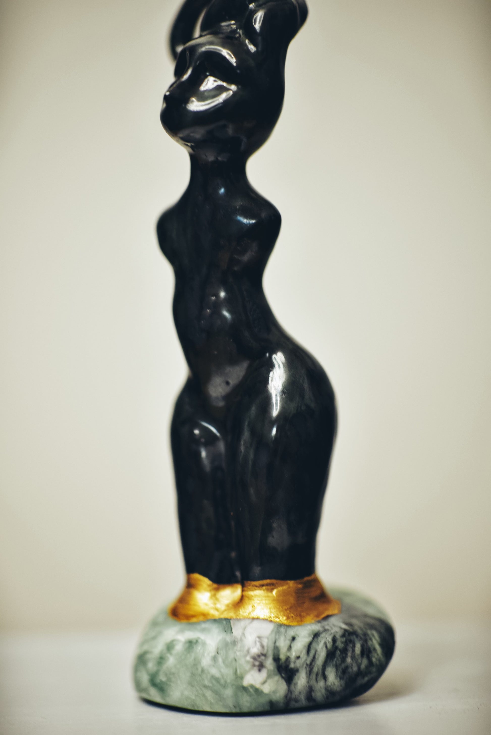 Clay with bronze and effect glaze, 24kt gold, base made of steatite.