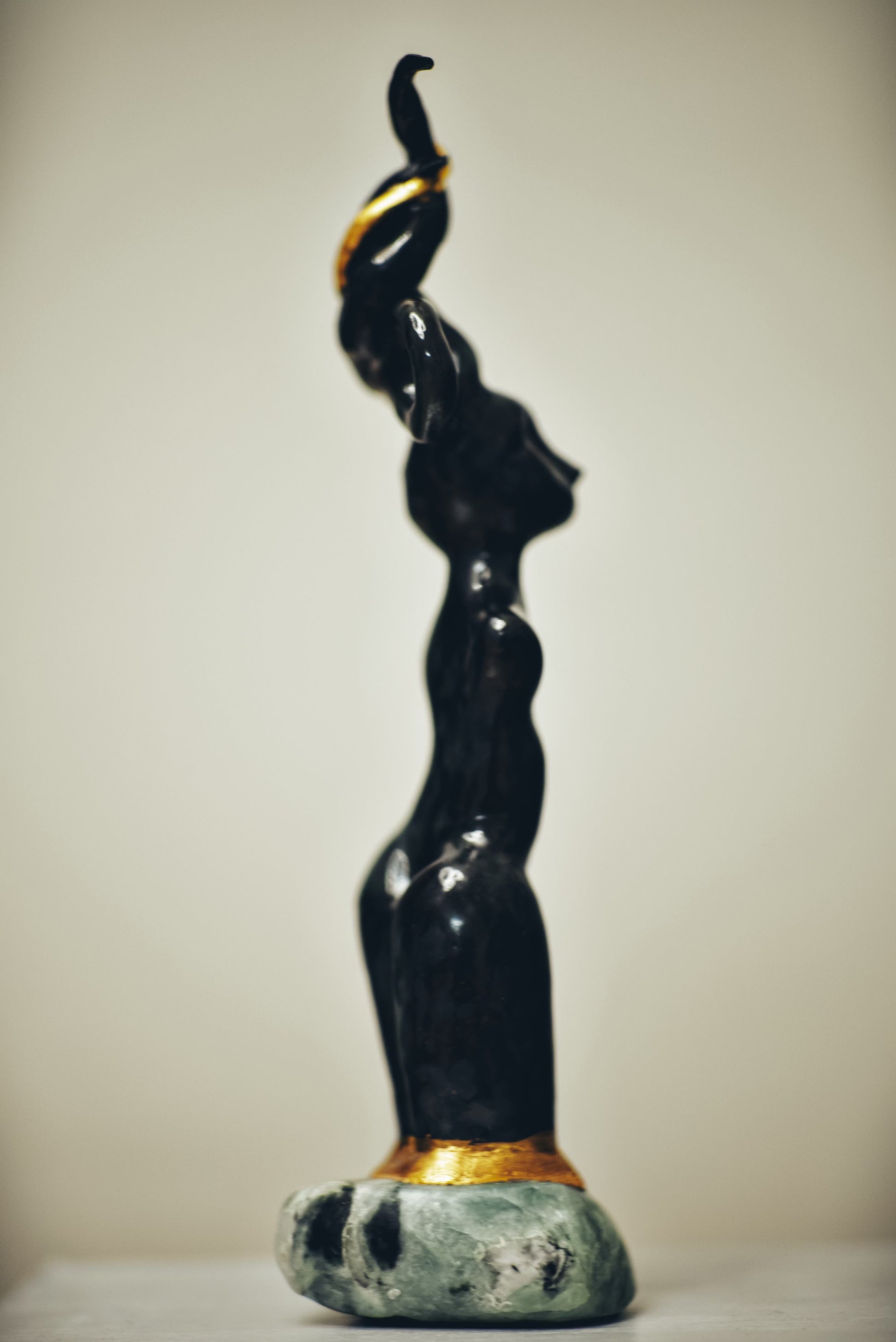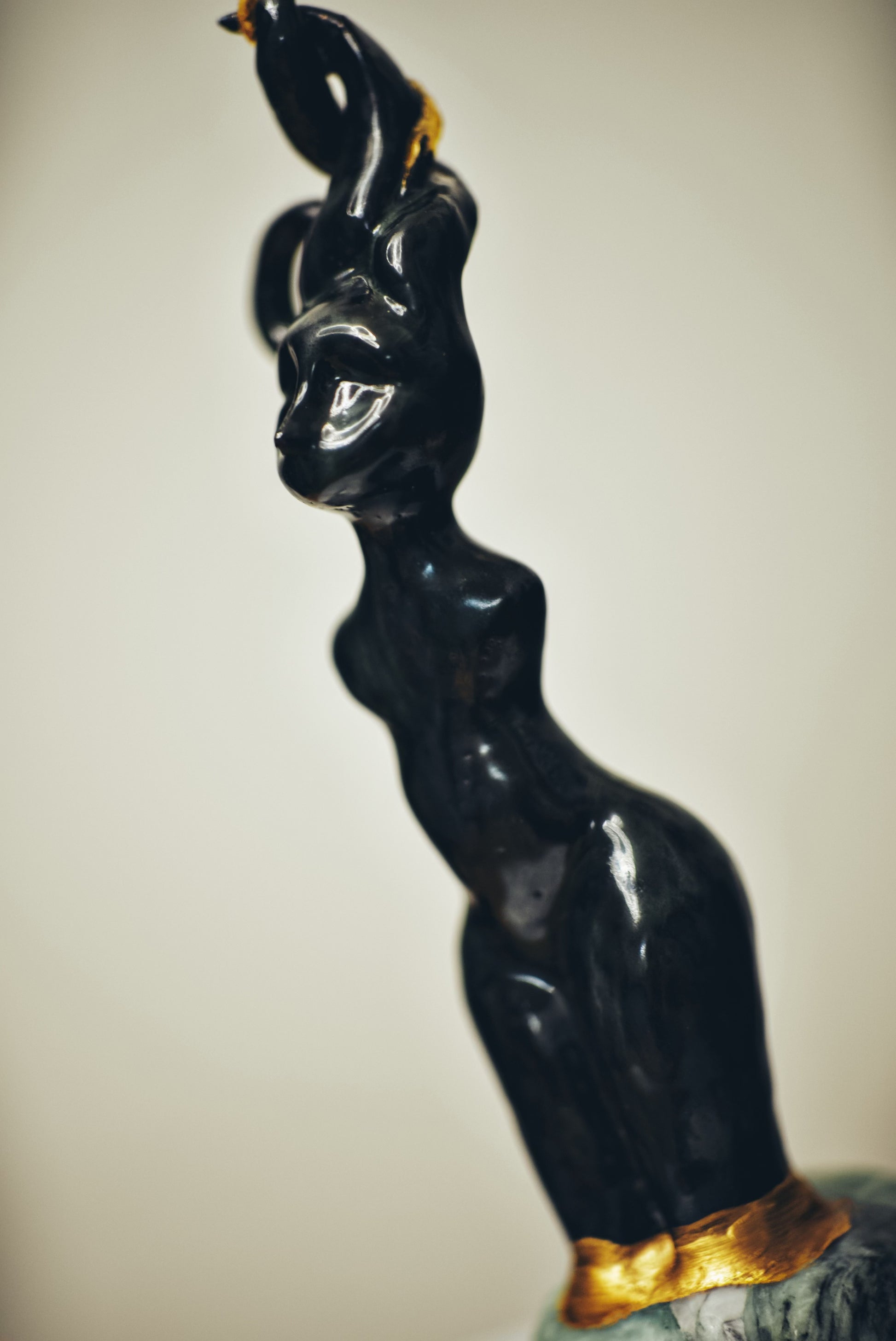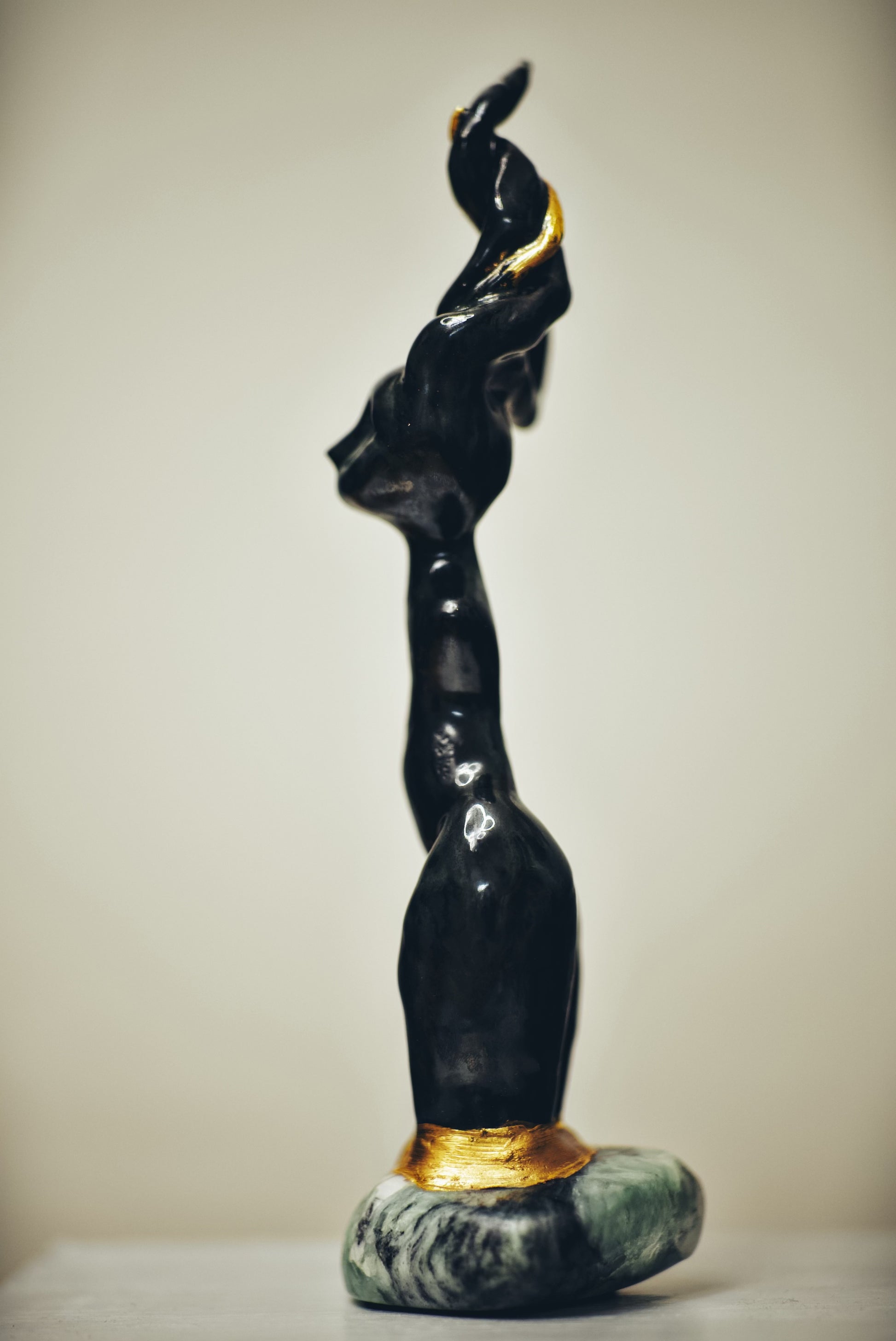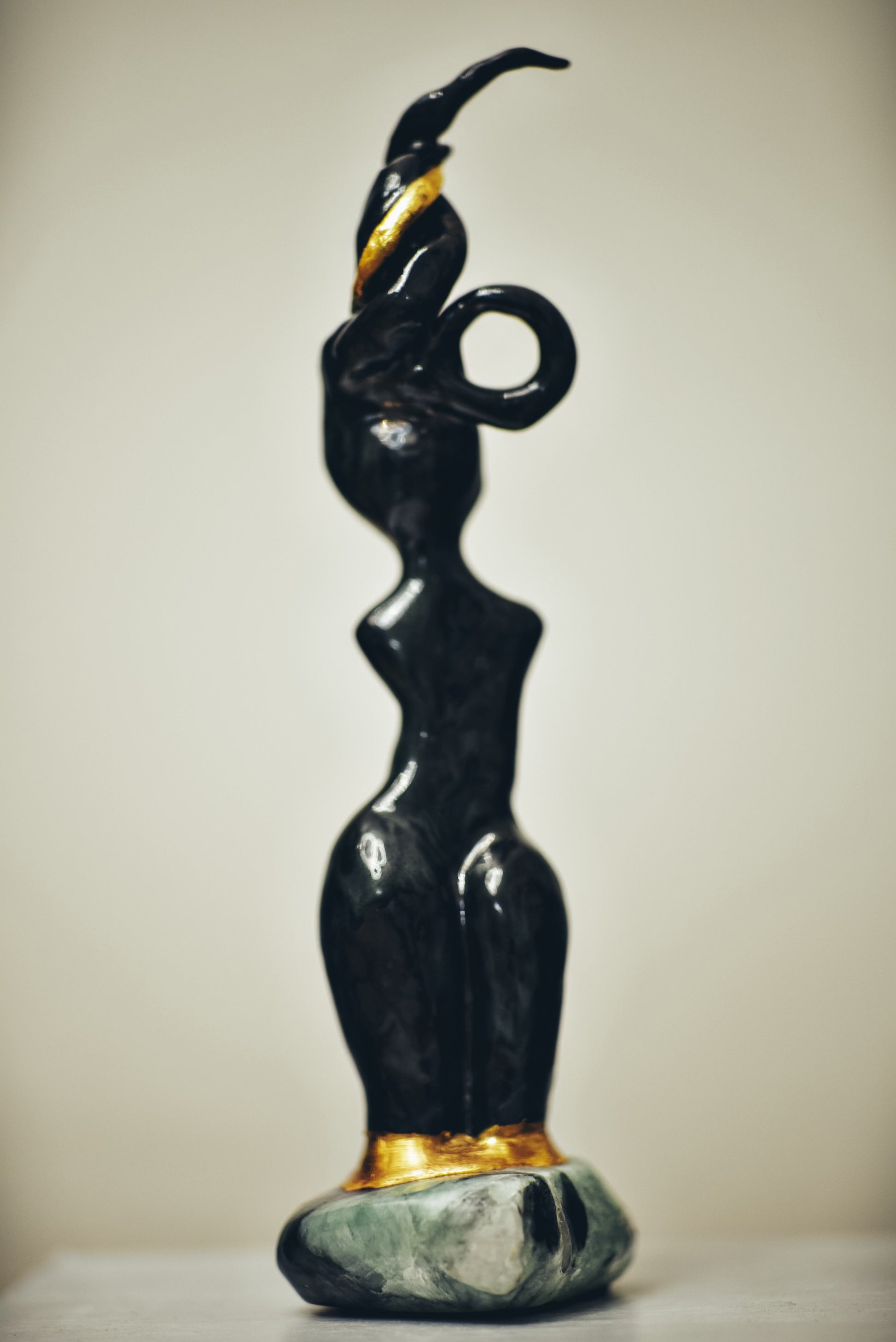 Clay with bronze and effect glaze, 24kt gold, base made of steatite.