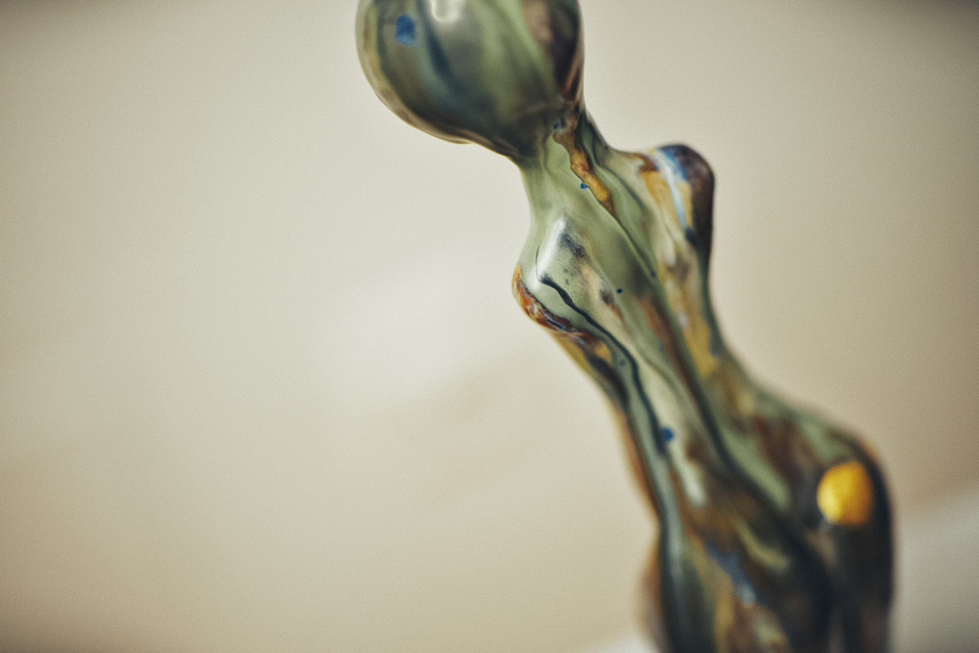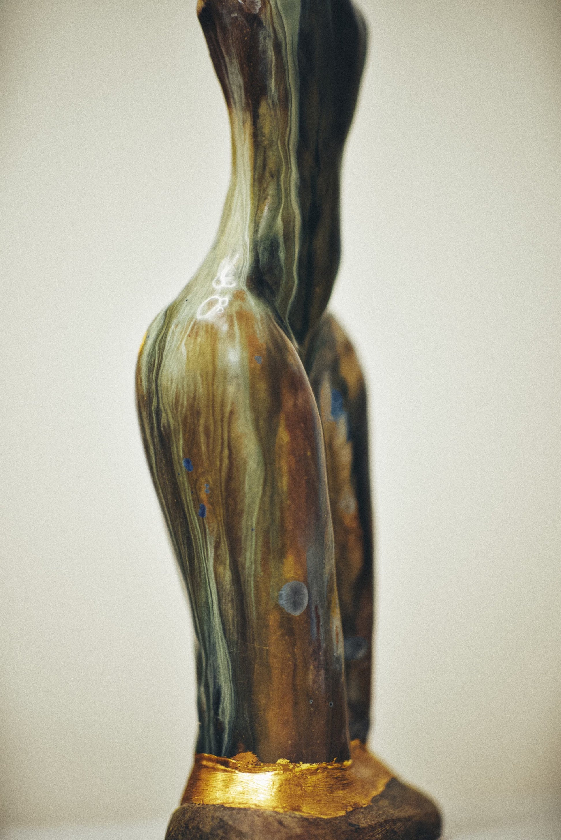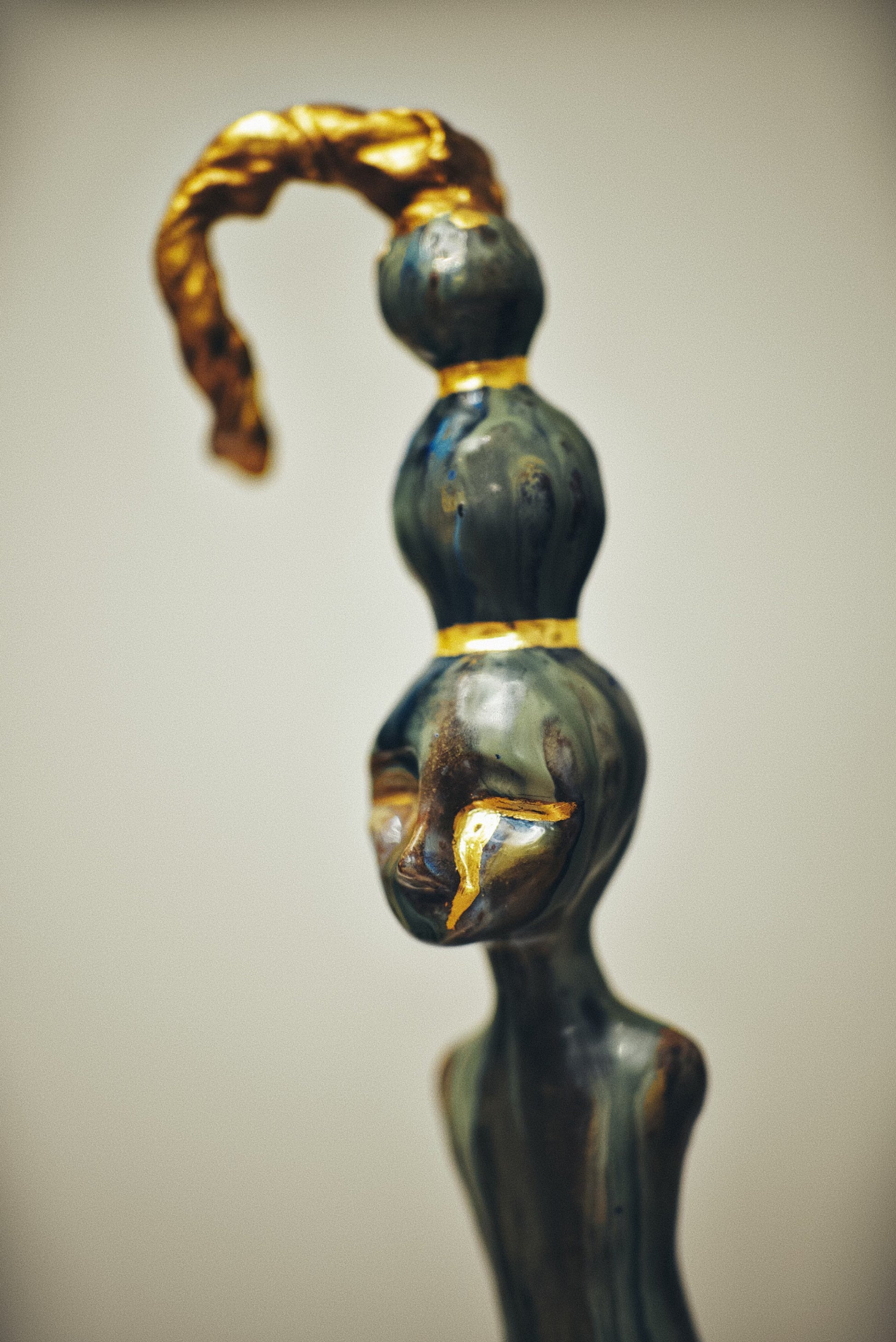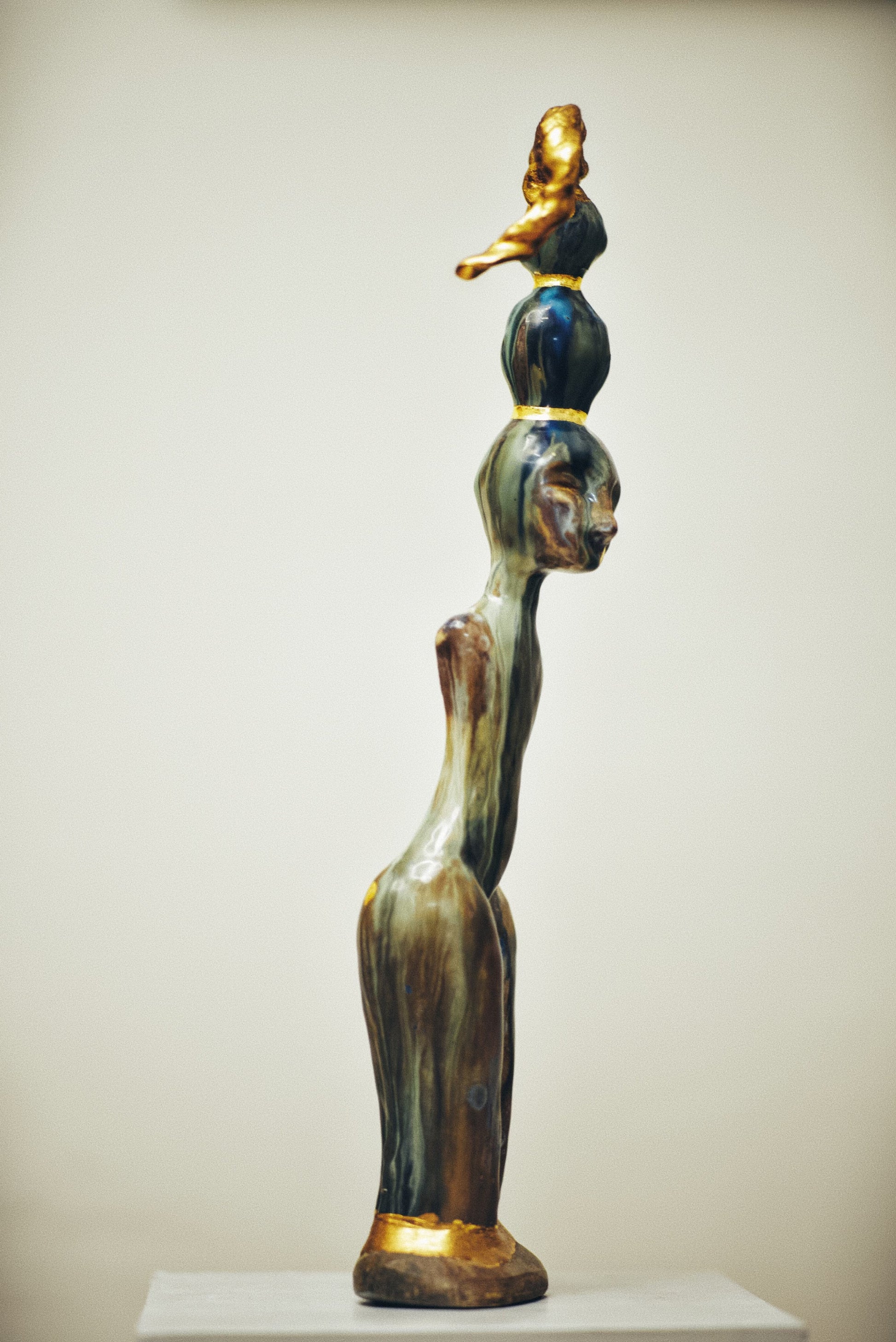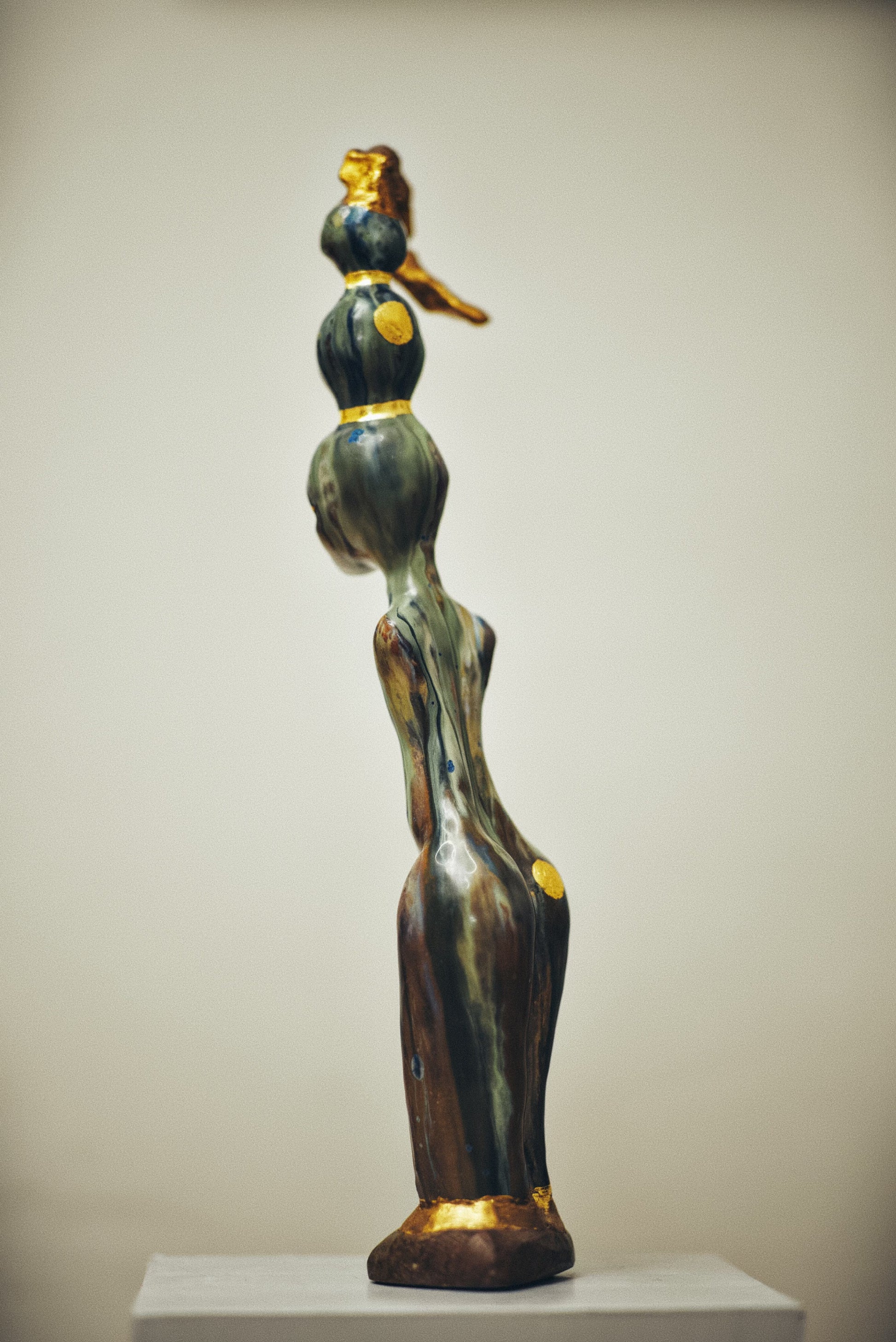 Clay with melted crystal glaze, 24kt gold, base made of steatite.