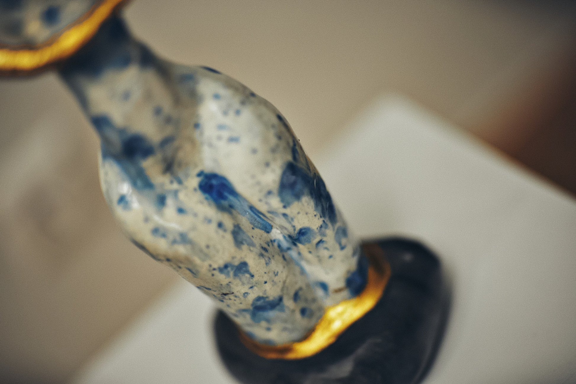 Sonnensturm transforms bone china's ancient alchemy - earth, bone, and fire - into a meditation on resurrection. The porcelain's milk-white glow holds both the silence storms seek and the furnace where stars bloom again. Each viewing angle reveals new relationships between tempest and calm, between the gold's solar radiance and the blue's lunar cool.