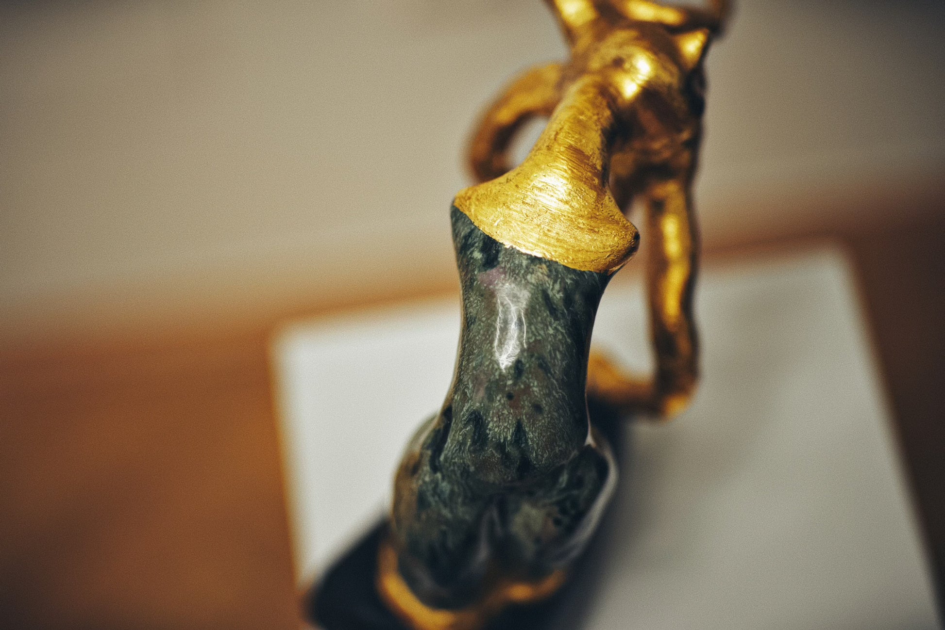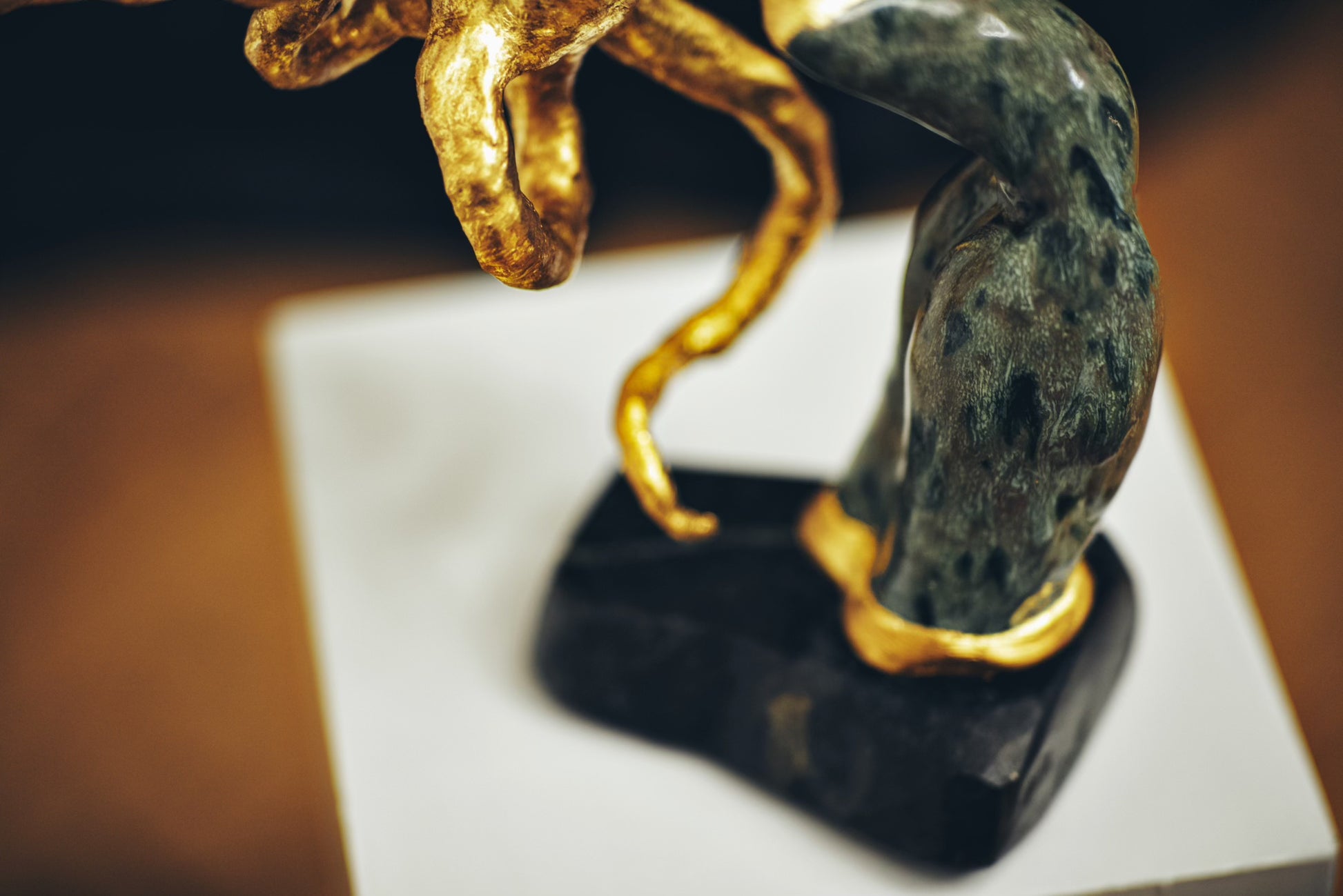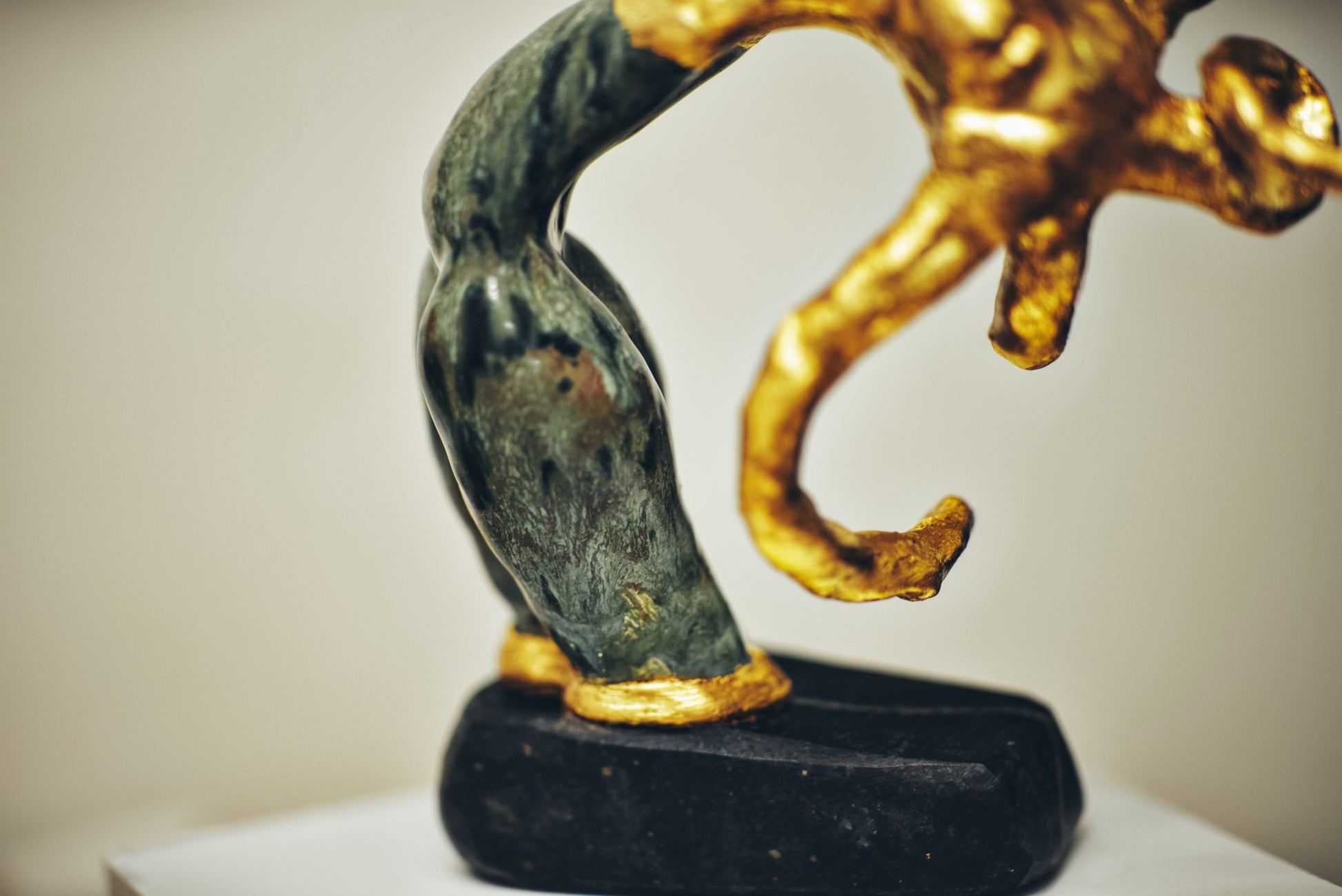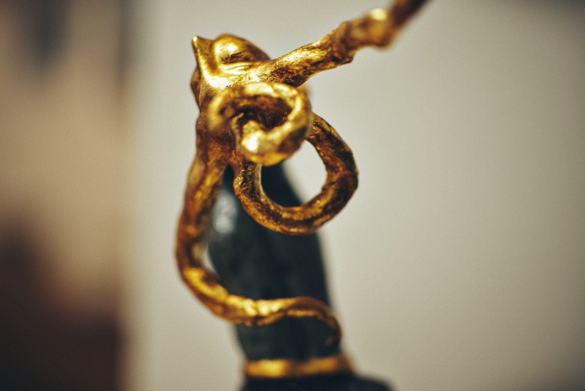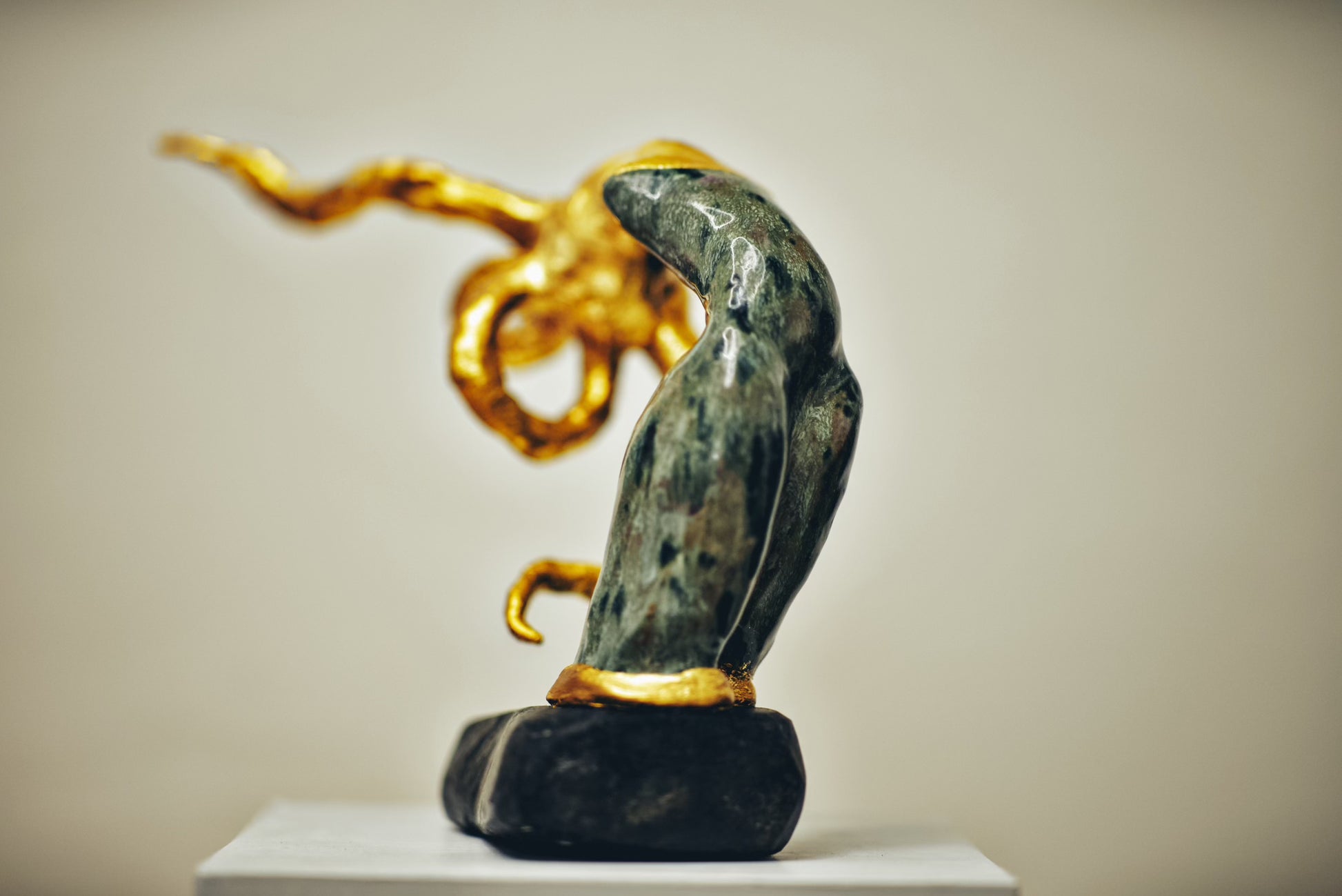 Clay with effect glaze, 24kt gold, base made of steatite.